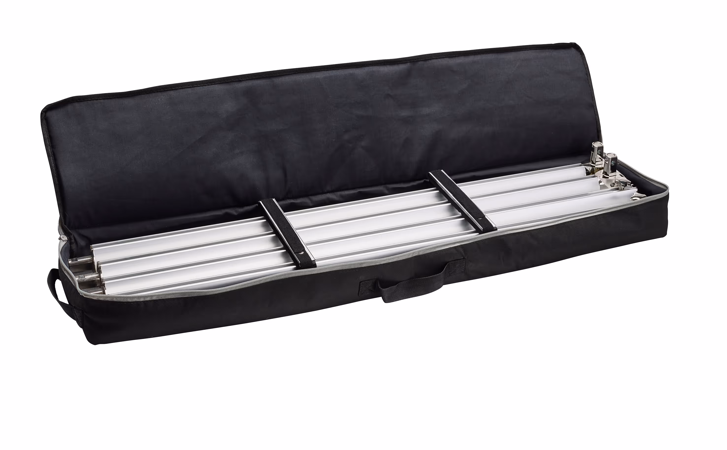 De frames hebben een maximale lengte van 1 meter. Daardoor is zelfs een wand van 3 × 3 meter compact te vervoeren in één roltas. Minder volume, eenvoudiger transport en sneller op- en afbouwen bij iedere beursdeelname.